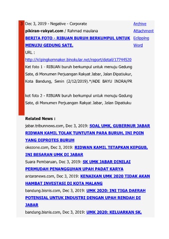 Suara Pembaruan, Dec 3, 2019: SK UMK JABAR DINILAI