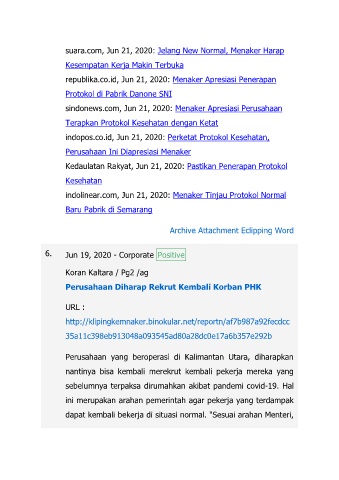 sindonews.com, Jun 21, 2020: Menaker Apresiasi Perusahaan