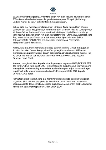 Keenam, mengintruksikan kepada seluruh perangkat organisasi DPC/PC FSPA SPSI