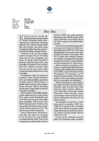 Title MAY DAY Media Name Investor Daily Pub. Date 30 April 2019 Page/URL 4 Media Type Koran Sentiment Positive Page 445 of 656.