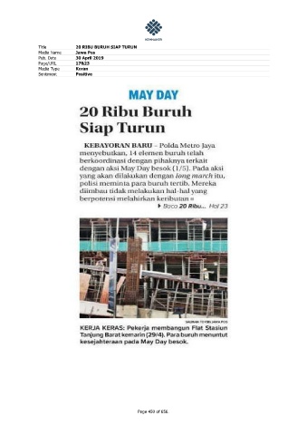 Title 20 RIBU BURUH SIAP TURUN Media Name Jawa Pos Pub. Date 30 April 2019 Page/URL 17&23 Media Type Koran Sentiment Positive Page 450 of 656.
