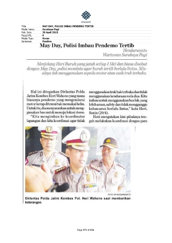Title MAY DAY, POLISI IMBAU PENDEMO TERTIB Media Name Surabaya Pagi Pub. Date 30 April 2019 Page/URL 6 Media Type Koran Sentiment Positive Page 470 of 656.