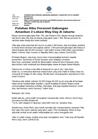 Title PULUHAN RIBU PERSONEL GABUNGAN AMANKAN 2 LOKASI MAY DAY DI JAKARTA