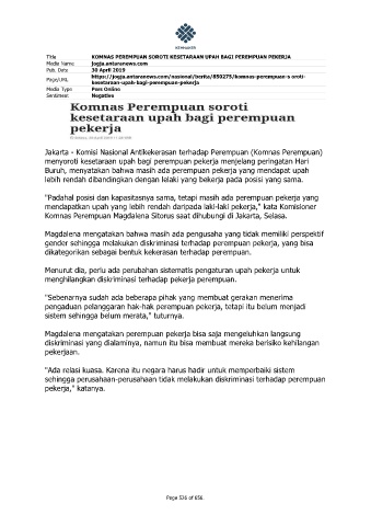 Title KOMNAS PEREMPUAN SOROTI KESETARAAN UPAH BAGI PEREMPUAN PEKERJA