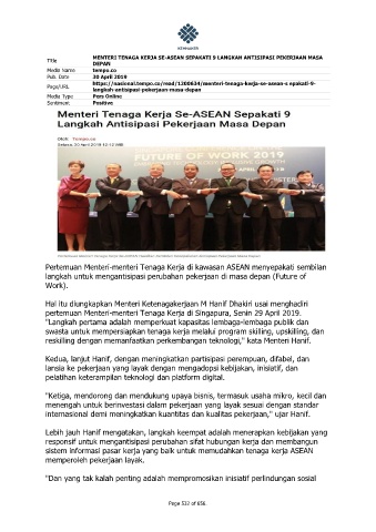 Title MENTERI TENAGA KERJA SE-ASEAN SEPAKATI 9 LANGKAH ANTISIPASI PEKERJAAN MASA