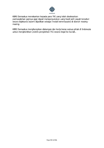 KBRI Damaskus menekankan kepada para TKI yang telah diselesaikan