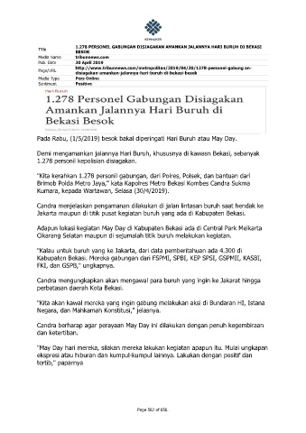 Title 1.278 PERSONEL GABUNGAN DISIAGAKAN AMANKAN JALANNYA HARI BURUH DI BEKASI