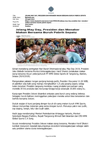 Title JELANG MAY DAY, PRESIDEN DAN MENAKER MAKAN BERSAMA BURUH PABRIK SEPATU