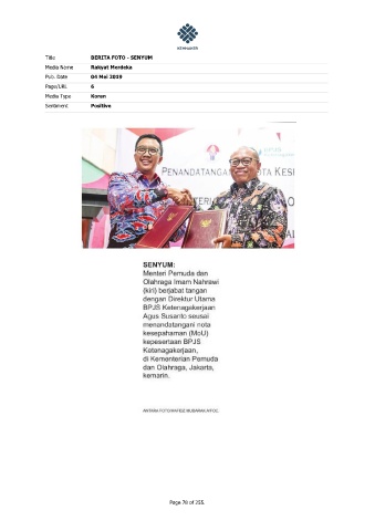 Title BERITA FOTO - SENYUM Media Name Rakyat Merdeka Pub. Date 04 Mei 2019 Page/URL 6 Media Type Koran Sentiment Positive Page 78 of 255.