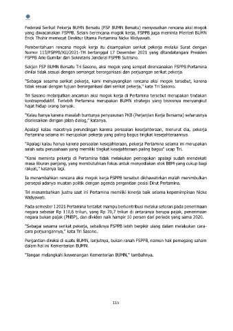 Federasi Serikat Pekerja BUMN Bersatu (FSP BUMN Bersatu) menyesalkan rencana aksi mogok