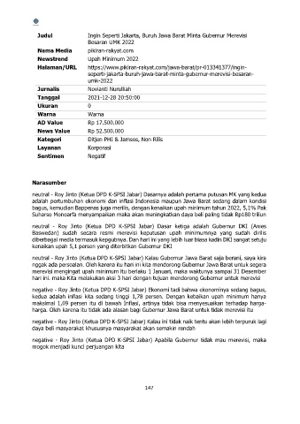 negative - Roy Jinto (Ketua DPD K-SPSI Jabar) Apabila Gubernur tidak mau merevisi, maka