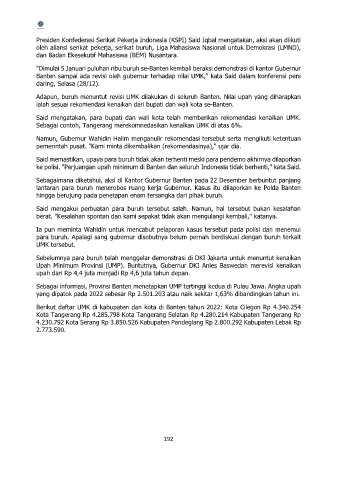 Banten sampai ada revisi oleh gubernur terhadap nilai UMK," kata Said dalam konferensi pers