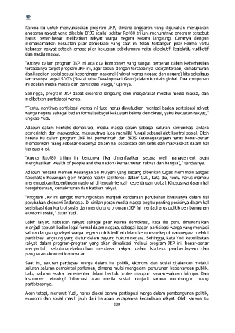Sehingga, program JKP dapat dikontrol langsung oleh masyarakat melalui media massa, dan