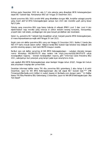 Desember, lapor ke WA BPJS Ketenagakerjaan jika tak dapat BLT Subsidi Gaji.*** (MR