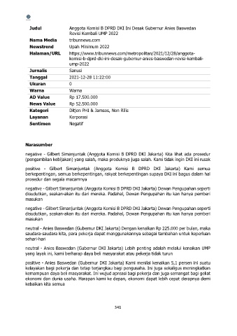 neutral - Anies Baswedan (Gubernur DKI Jakarta) Dengan kenaikan Rp 225.000 per bulan, maka