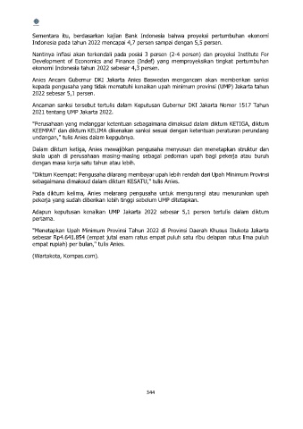 Pada diktum kelima, Anies melarang pengusaha untuk mengurangi atau menurunkan upah