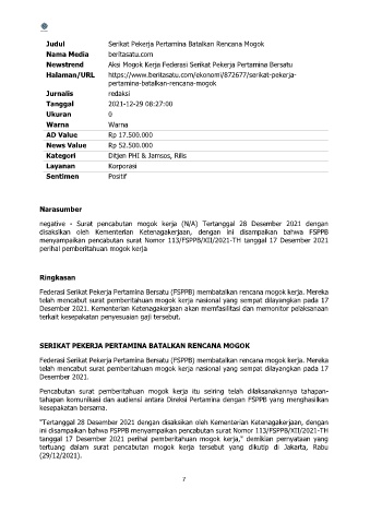 tanggal 17 Desember 2021 perihal pemberitahuan mogok kerja," demikian pernyataan yang