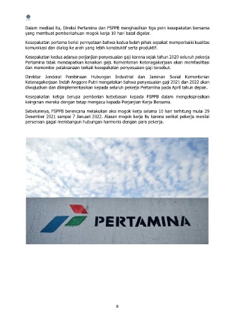 Dalam mediasi itu, Direksi Pertamina dan FSPPB menghasilkan tiga poin kesepakatan bersama