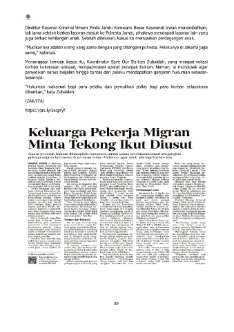 Menanggapi temuan kasus itu, Koordinator Save Our Sis-ters Zubaidah, yang mengad-vokasi