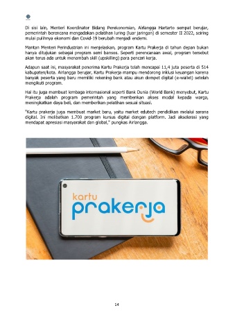 kabupaten/kota. Airlangga berujar, Kartu Prakerja mampu mendorong inklusi keuangan karena