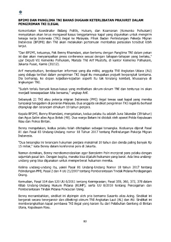 tenaga kerja Indonesia (TKI) ilegal ke Malaysia. Pihak Badan Perlindungan Pekerja Migran