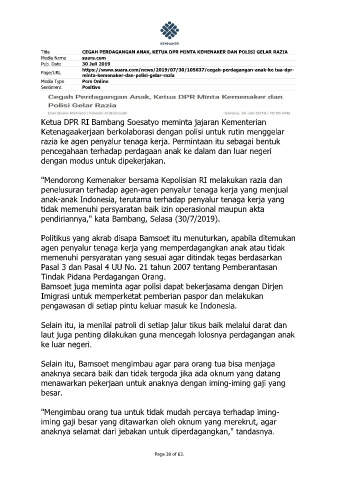 Title CEGAH PERDAGANGAN ANAK, KETUA DPR MINTA KEMENAKER DAN POLISI GELAR RAZIA