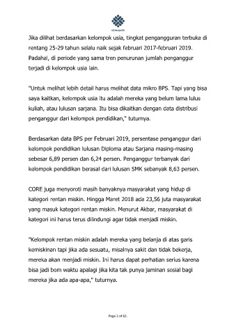 CORE juga menyoroti masih banyaknya masyarakat yang hidup di