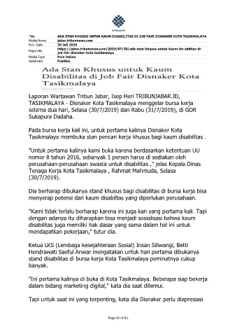 Title ADA STAN KHUSUS UNTUK KAUM DISABILITAS DI JOB FAIR DISNAKER KOTA TASIKMALAYA