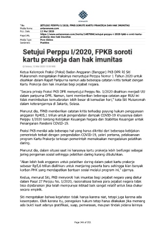 Title SETUJUI PERPPU I/2020, FPKB SOROTI KARTU PRAKERJA DAN HAK IMUNITAS