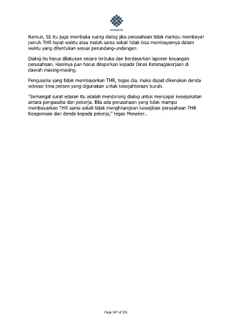 Namun, SE itu juga membuka ruang dialog jika perusahaan tidak mampu membayar
