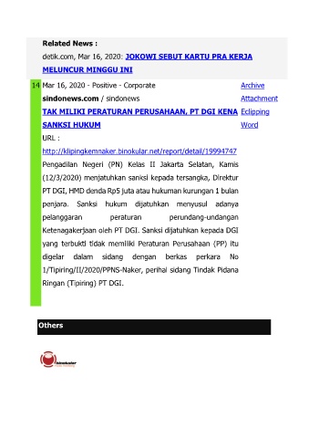 Ketenagakerjaan oleh PT DGI. Sanksi dijatuhkan kepada DGI