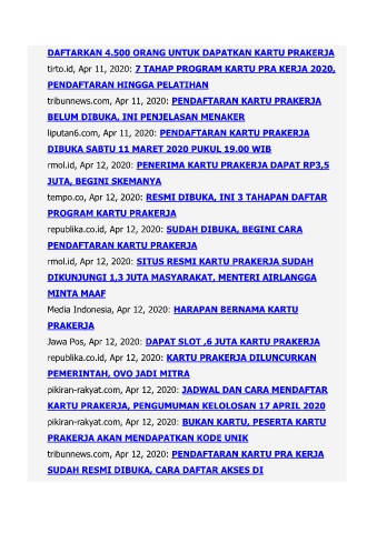 tribunnews.com, Apr 12, 2020: PENDAFTARAN KARTU PRA KERJA