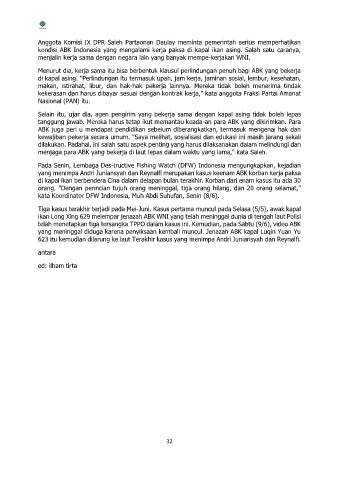 di kapal asing. "Perlindungan itu termasuk upah, jam kerja, jaminan sosial, lembur, kesehatan,