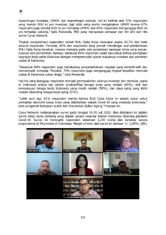 "Lebih jauh lagi, 61% responden menilai bahwa RUU Cipta Kerja ini adalah solusi untuk