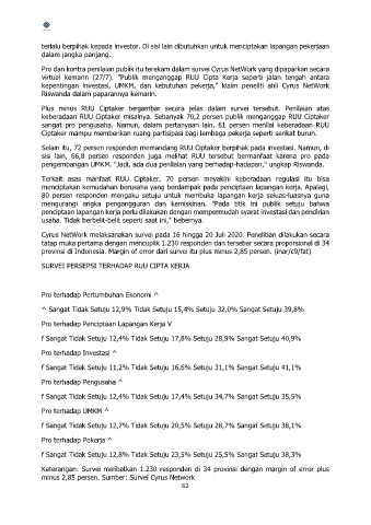 sangat pro pengusaha. Namun, dalam pertanyaan lain, 61 persen menilai keberadaan RUU
