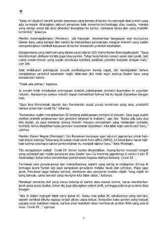 "Kemenaker sudah mengeluarkan SE tentang pelaksanaan protokol di industri. Saya juga sudah