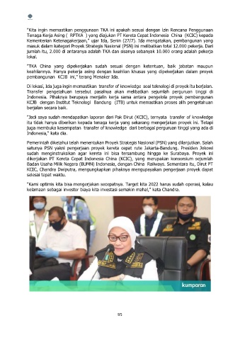 "Jadi saya sudah mendapatkan laporan dari Pak Dirut (KCIC), ternyata transfer of knowledge