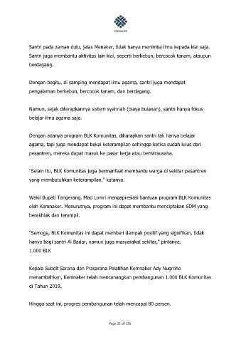 "Selain itu, BLK Komunitas juga bermanfaat membantu warga di sekitar pesantren