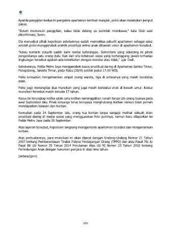setelah polisi menggerebek praktik prostitusi online anak dibawah umur di apartemen tersebut.