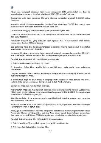 atau tidak melalui website Kemnaker, bsu.bpjsketenagakerjaan.go.id atau WhatsApp.