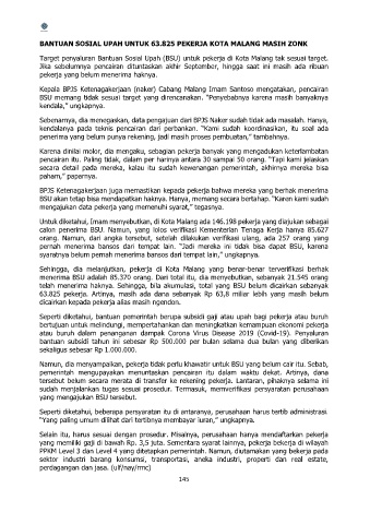 Target penyaluran Bantuan Sosial Upah (BSU) untuk pekerja di Kota Malang tak sesuai target.
