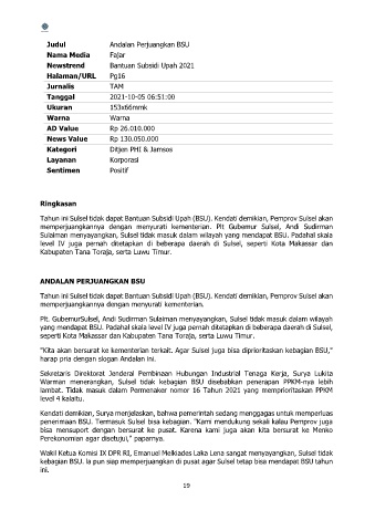 penerimaan BSU. Termasuk Sulsel bisa kebagian. "Kami mendukung sekali kalau Pemprov juga