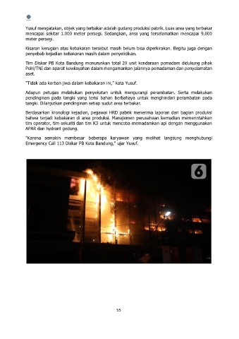 bahwa terjadi kebakaran di area produksi. Manajemen perusahaan kemudian memerintahkan