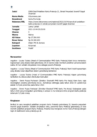 negative - Louisa Tuhatu (Head of Communication PMO Kartu Prakerja) Kami terus memantau