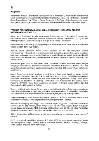 Dalam Penangkapan Ikan (Work in Fishing Convention). Ratifikasi ini diperlukan sebagai upaya