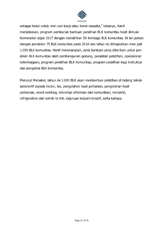 dengan pendirian 75 BLK komunitas pada 2018 dan tahun ini ditingkatkan men jadi