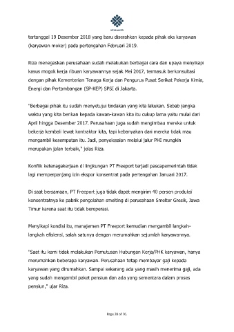 tertanggal 19 Desember 2018 yang baru diserahkan kepada pihak eks karyawan