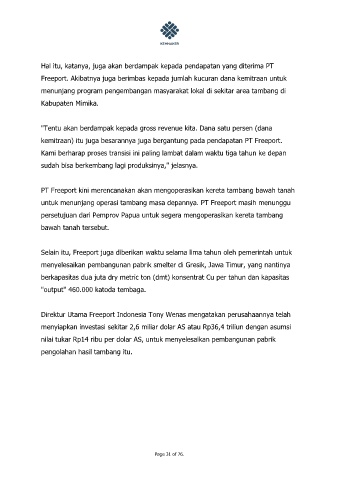 untuk menunjang operasi tambang masa depannya. PT Freeport masih menunggu