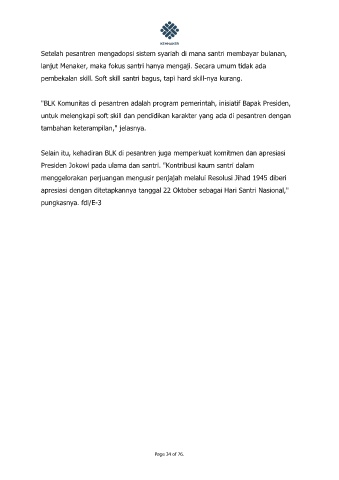 lanjut Menaker, maka fokus santri hanya mengaji. Secara umum tidak ada