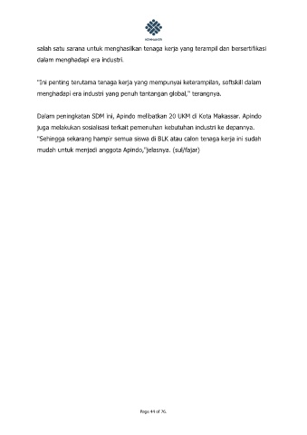 Dalam peningkatan SDM ini, Apindo melibatkan 20 UKM di Kota Makassar. Apindo